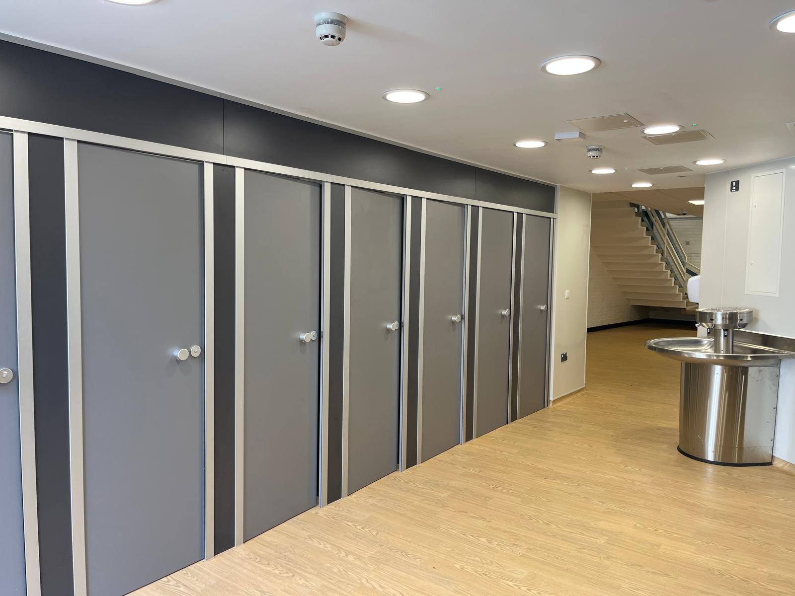 Our 13mm solid grade laminate Cronus cubicles were specified at full height for maximum privacy along with matching duct panels.