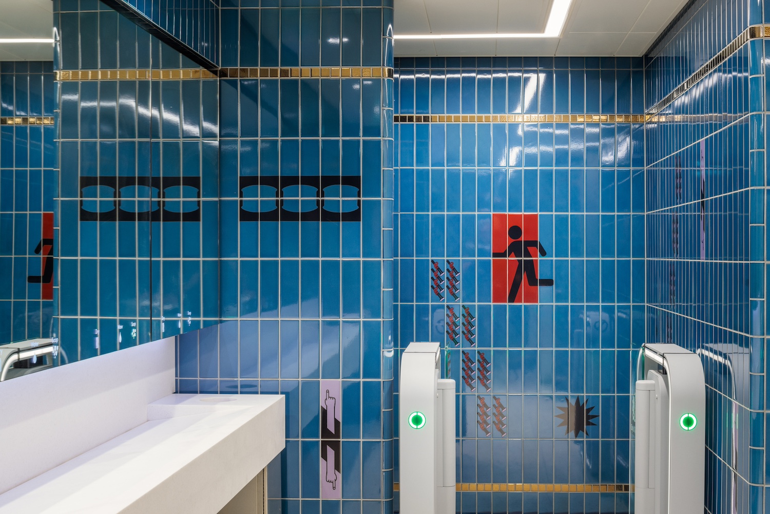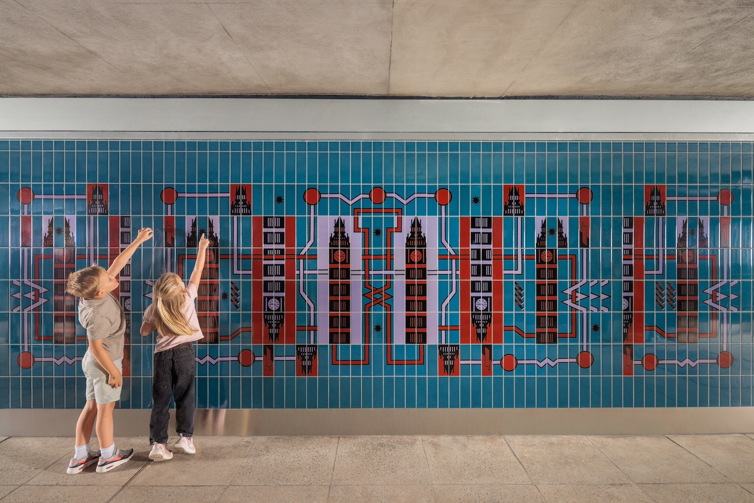 The brand-new facilities are being launched with an exciting new public artwork installation from artist James Lambert, who has been working in collaboration with the delivery and design partners to creatively incorporate artwork into each of the distinct sites. Visitors and commuters will be greeted by the specially made screen-printed tiles as they walk through the now ‘Westminster Blue’ tiled subway, between Exit 5 and 6 of Westminster Station. The digitally hand-drawn illustrations continue throughout the public facilities, inspired by the nearby Elizabeth Tower and Big Ben, with repeated icons of regimented toy soldiers, evoking both national symbolism and a sense of whimsy. Graphic hands recall acts of pointing, voting and protest – from tourists to suffragettes. There are also references to the iconic arches of Westminster Bridge and the celebratory spirit of the historical Brocks Fireworks, the design nods to the Festival of Britain and centuries of civic gathering in Parliament Square.
