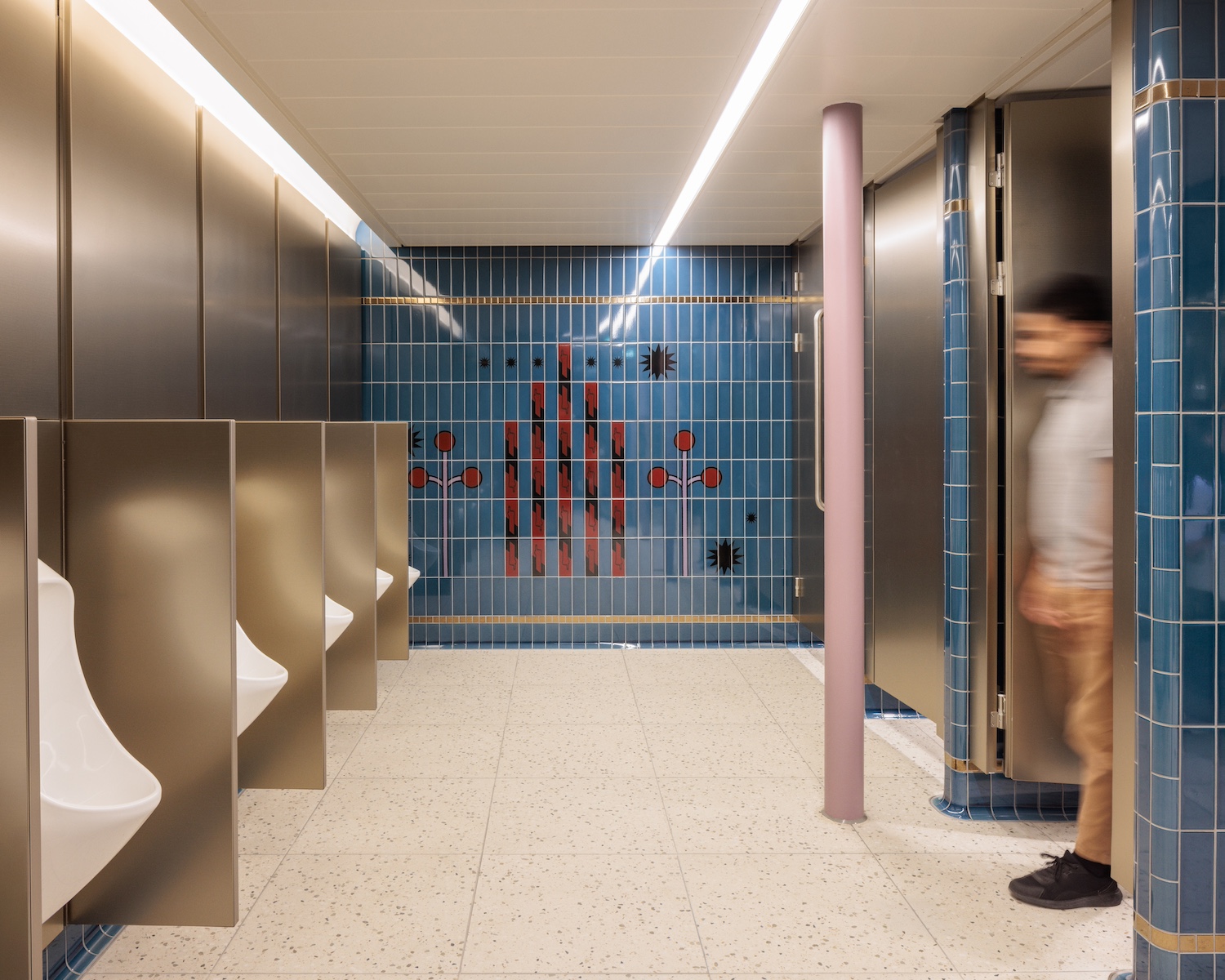 The brand-new facilities are being launched with an exciting new public artwork installation from artist James Lambert, who has been working in collaboration with the delivery and design partners to creatively incorporate artwork into each of the distinct sites. Visitors and commuters will be greeted by the specially made screen-printed tiles as they walk through the now ‘Westminster Blue’ tiled subway, between Exit 5 and 6 of Westminster Station. The digitally hand-drawn illustrations continue throughout the public facilities, inspired by the nearby Elizabeth Tower and Big Ben, with repeated icons of regimented toy soldiers, evoking both national symbolism and a sense of whimsy. Graphic hands recall acts of pointing, voting and protest – from tourists to suffragettes. There are also references to the iconic arches of Westminster Bridge and the celebratory spirit of the historical Brocks Fireworks, the design nods to the Festival of Britain and centuries of civic gathering in Parliament Square.